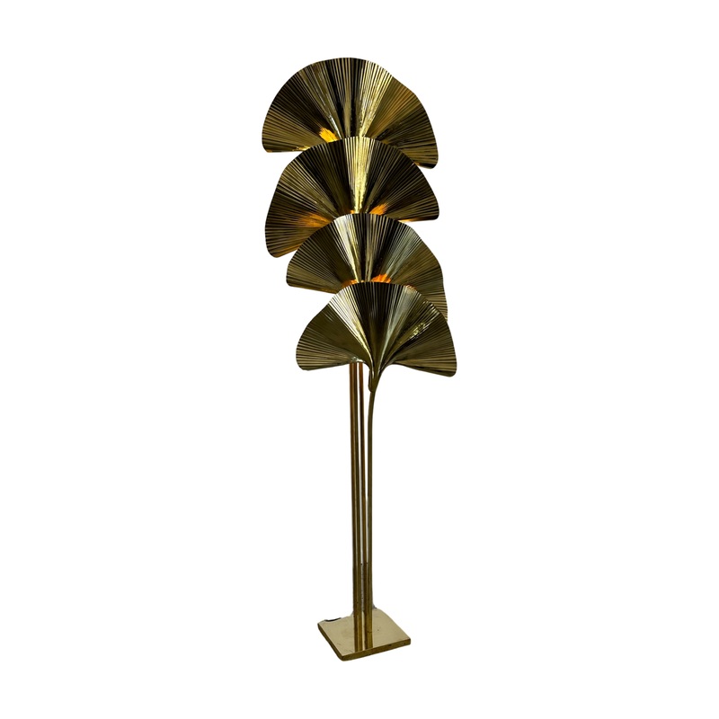 Italian Brass Ginkgo Leaf Floor Lamp, Contemporary