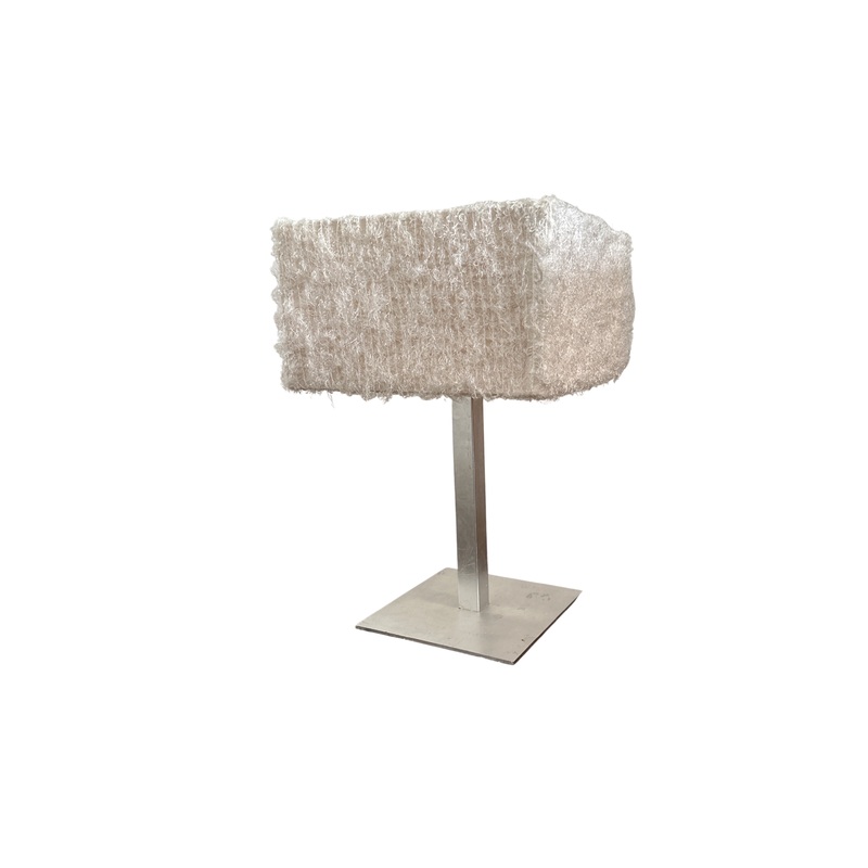 Italian Square Steel Base Table Lamp and Synthetic Shade, 1980s