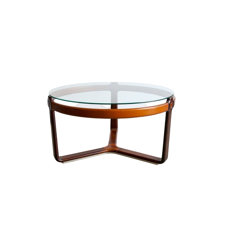 Italian vintage round glass dining table by Ceccotti, 1970s