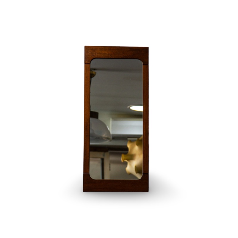 Italian Teak Mirror, 1960s Mid-Century Rectangular Wall Mirror with Rounded Corners