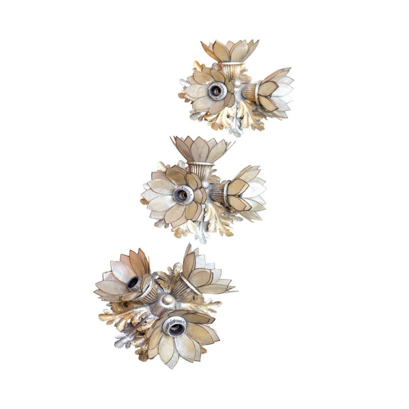 Italian Vintage Floral Sconces in Gilt Iron by Banci Firenze, 1970s