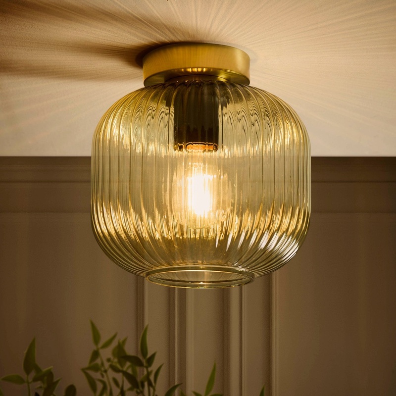 Jules Ribbed Glass Flush Ceiling Light – Green/Gold