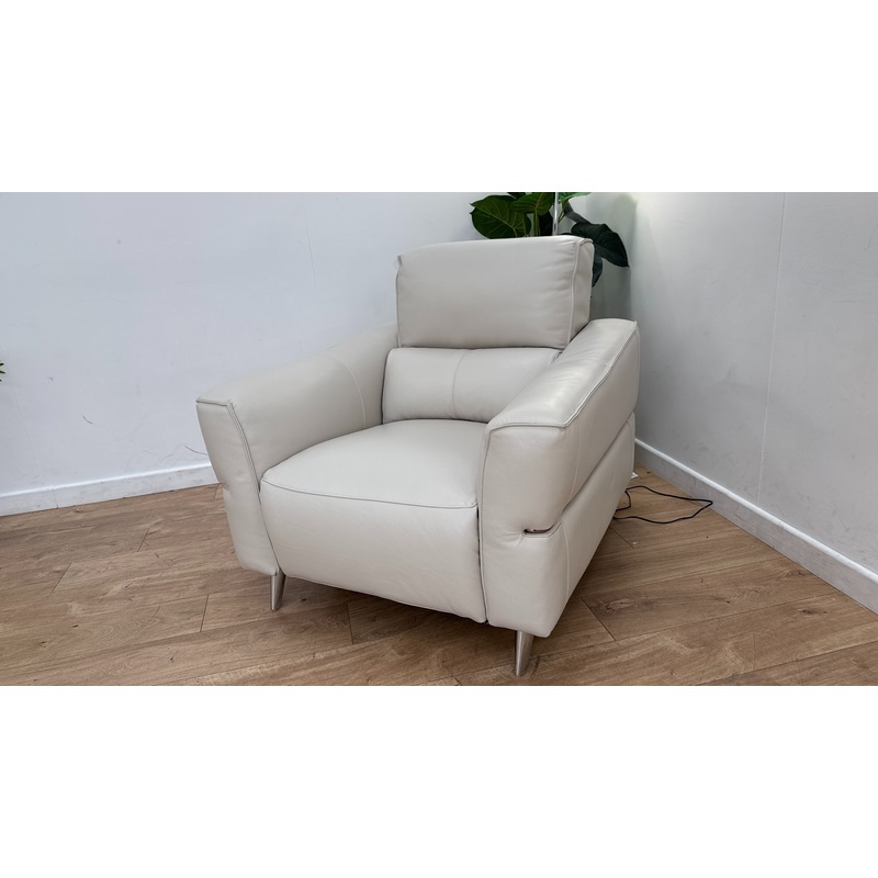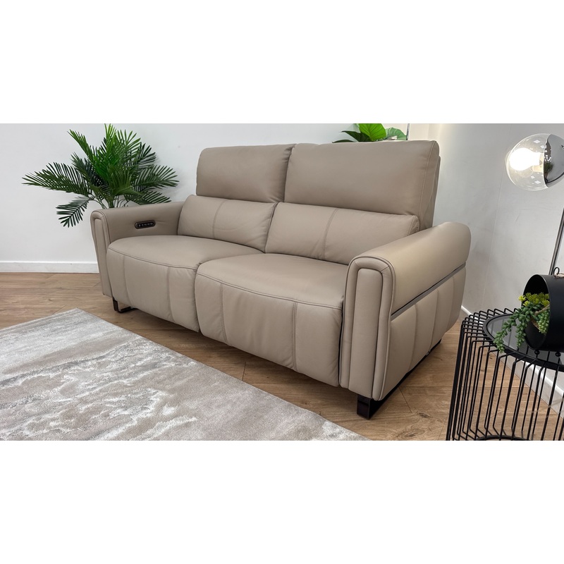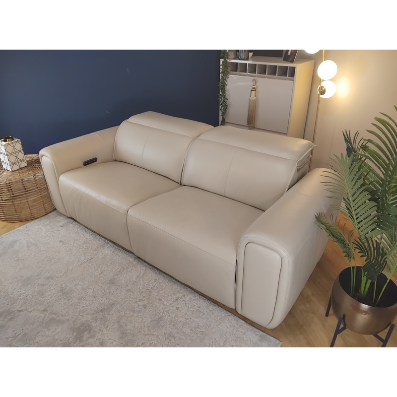 Sofology Premiere Leather 2.5 Seater Power Recliner/Headrest in Trusty Embossed Bone China