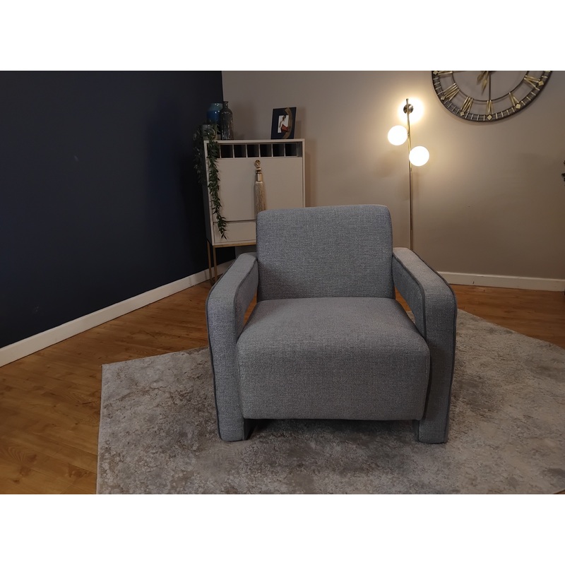Sofology Russo Fabric Accent Chair in Russo Lustre Weave Contrast Piping Zinc Mix