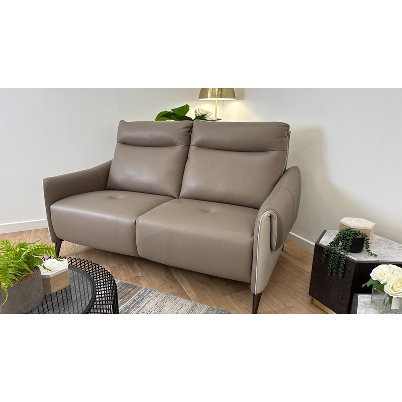 Sofology The Arezzo 2 Seater Recliner Sofa in Amalfi Cappuccino Leather/Cloud Grey Mix