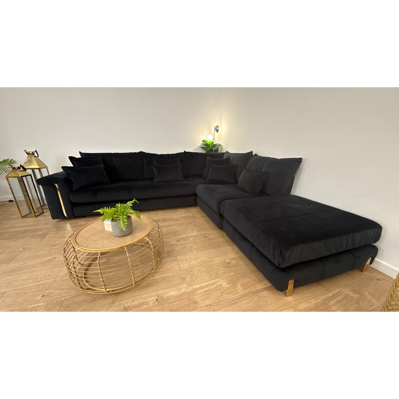 Sofology The Oscar 3 Corner 1 Chaise Fabric Sofa in Super Matt Velvet Black