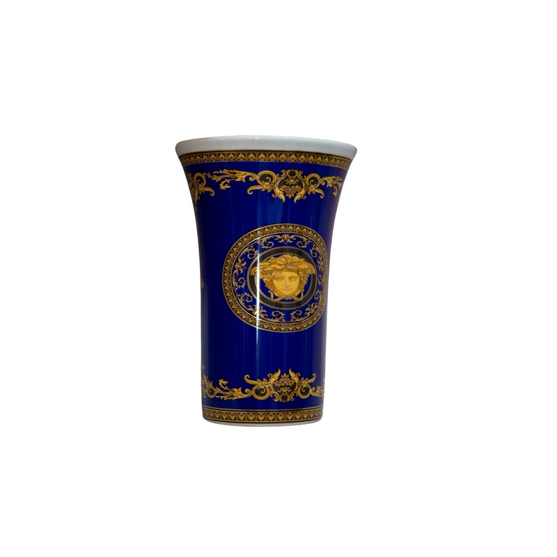 Versace Medusa porcelain vase in cobalt blue and gold Rosenthal for Versace