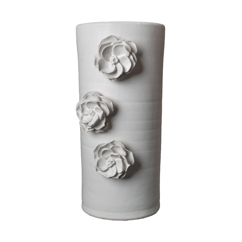 Catalina Vase, Applied Flowers, Matte White