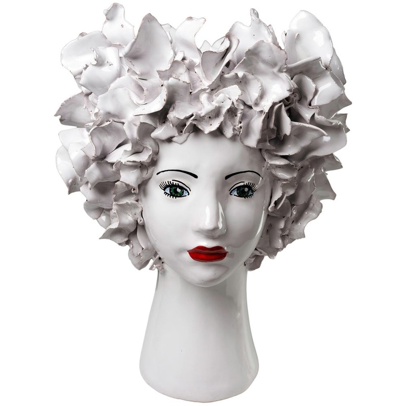 Ceramic Head Vase, White Flowers