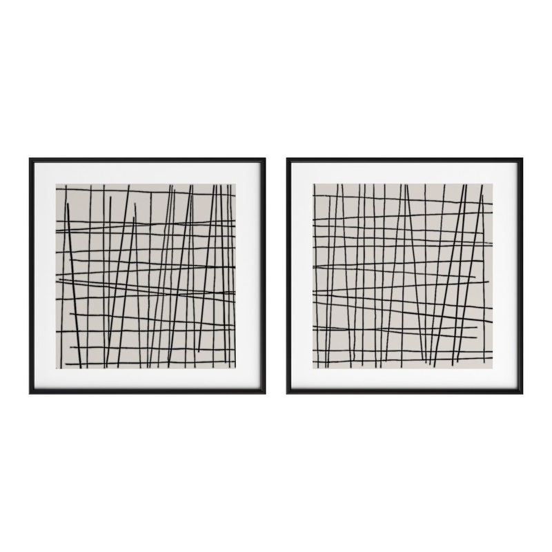 Crosshatch (Set Of 2) – 48″ X 48″ – Black Floater Frame