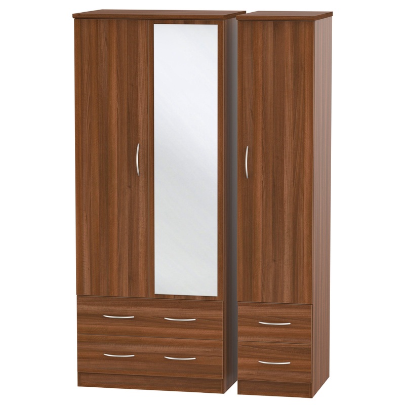 Avon 3 Door 4 Drawer Mirror Wardrobe Noche Walnut