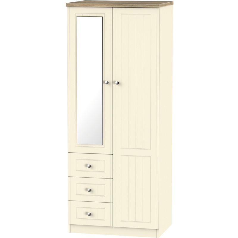 Vienna 2ft 6in 2 Drawer Mirror Wardrobe Cream Ash with Bardolino Top