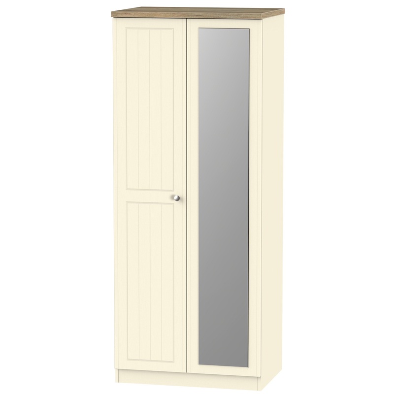 Vienna 2 Door Mirror Wardrobe Cream Ash with Bardolino Top