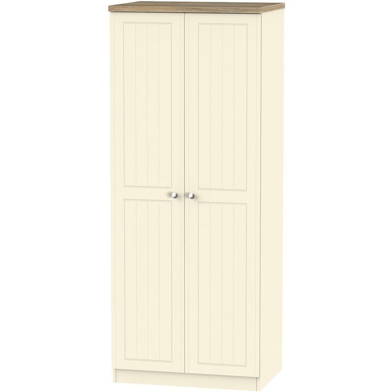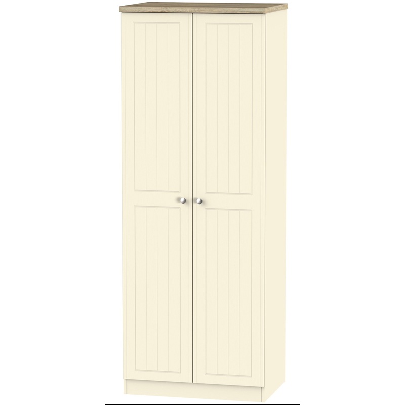 Vienna 2 Door Tall Wardrobe Cream Ash with Bardolino Top