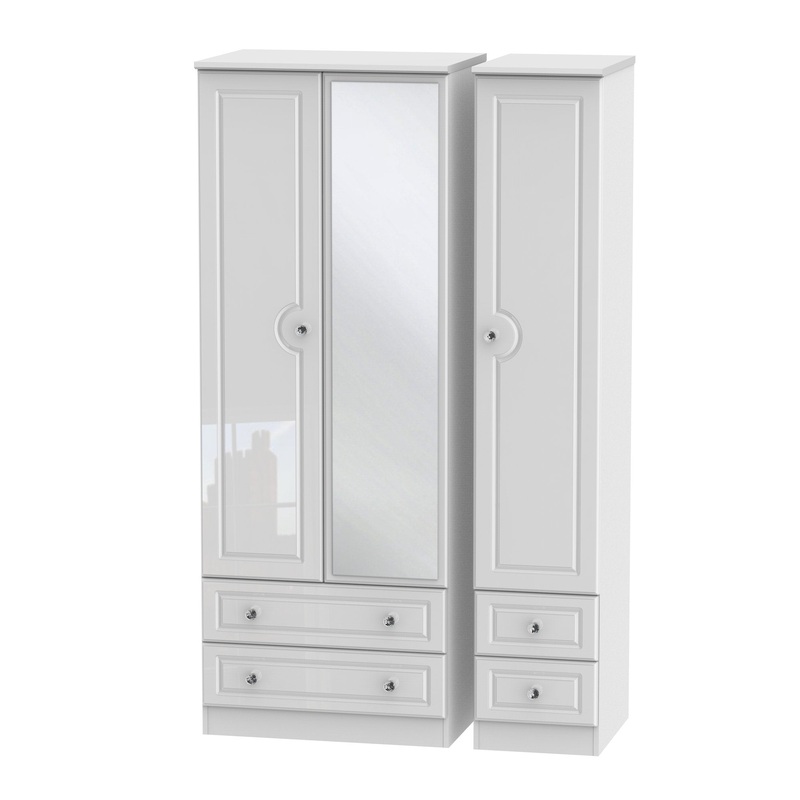Balmoral 3 Door 4 Drawer Mirror Wardrobe White High Gloss