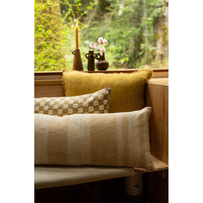 Yarn-dyed stripes in soft buttery yellow bring a laid-back feel to this textural cotton slub pillow. Complete with a premium feather down filler for fabulous fluff factor and comfort you’ll want to sink your head into. Machine Washable.