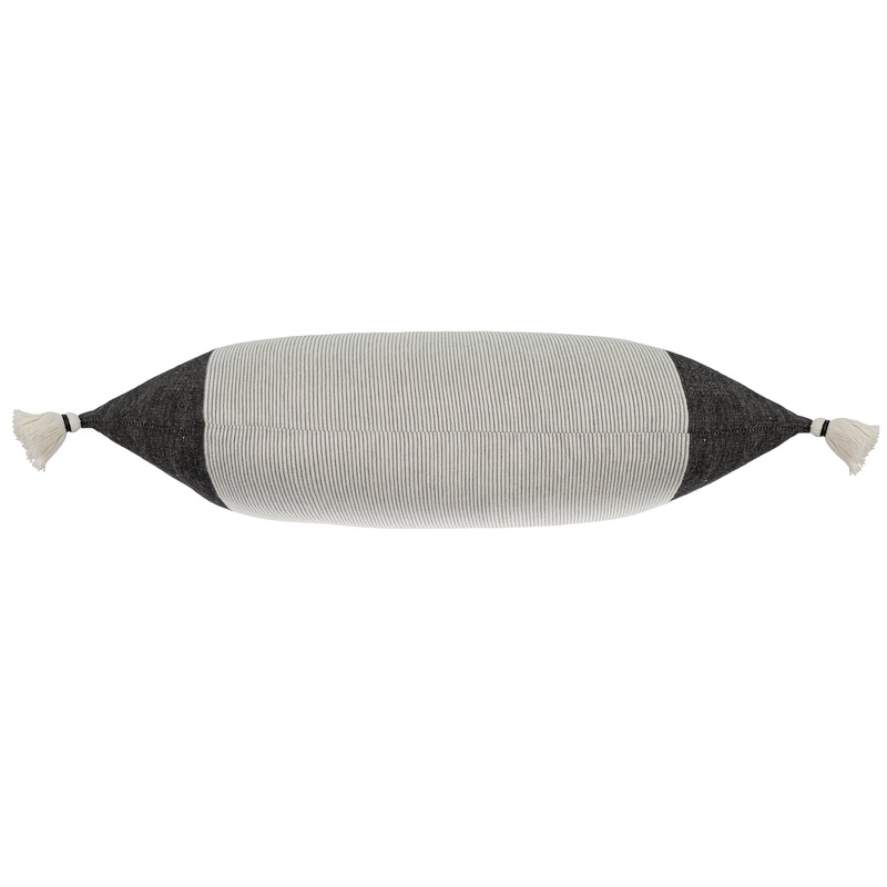 A decisive design, the South Beach Linen Pillow is characterized by woven charcoal pinstripes and is capped at each end with bold colour blocks, hand wrapped tassels adorning each corner. Style it with other monochromatic linens for a modern yet timeless appeal. Complete with a premium feather down filler for fabulous fluff factor and comfort you’ll want to sink your head into. Colours may vary slightly according to your device and the lighting in your space. Machine Wash Gentle.