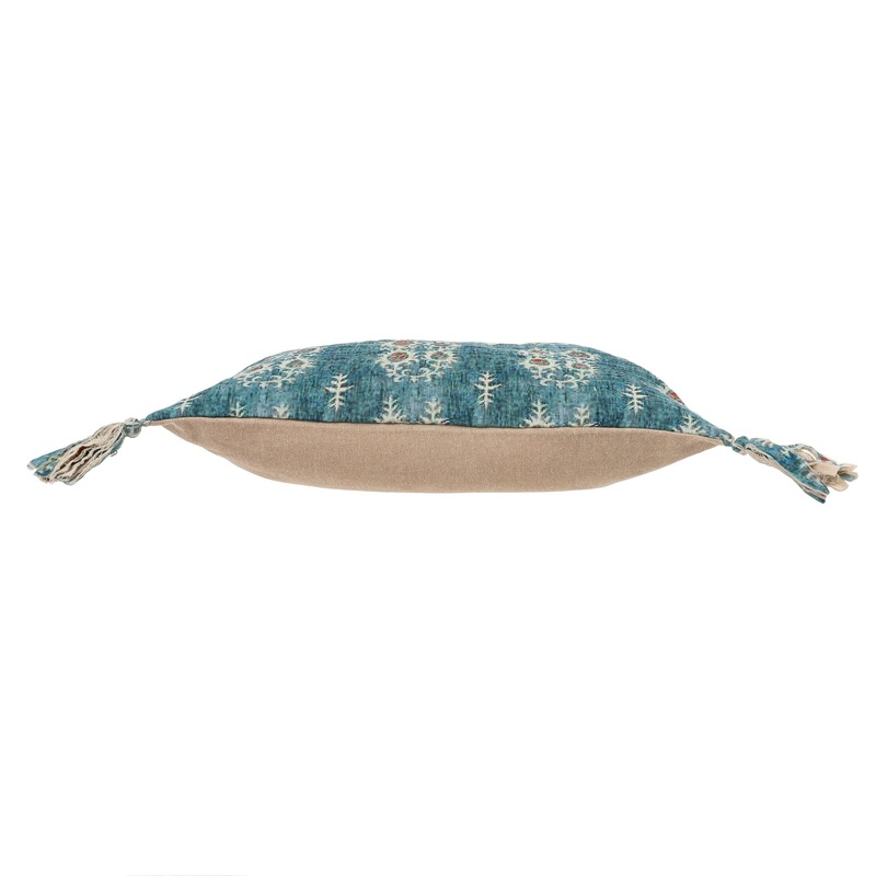 Add that bright and airy vacation feeling to your home with the ocean blue and burnt sienna accents of the richly patterned Bluebell Pillow. Trimmed with unique tassels, this handcrafted accent pillow comes complete with a premium feather down filler for fabulous fluff factor and comfort you’ll want to sink your head into. Machine Wash Gentle.