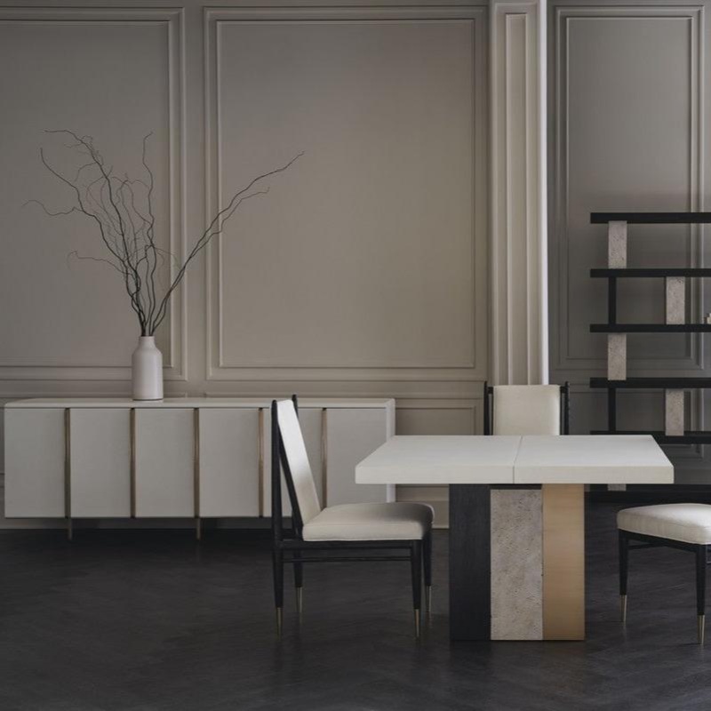 An innovative textured adobe finish lends depth and an organic element to this modern take on a 1940s-era Italian design. Sensory and sophisticated, its simple linear form features gently rounded edges and soft-close doors trimmed in a warmly accentuating, Lucent Bronze Metallic metal. Versatile in form and function, it offers a chic storage solution for dining and living rooms, hallways and home offices.