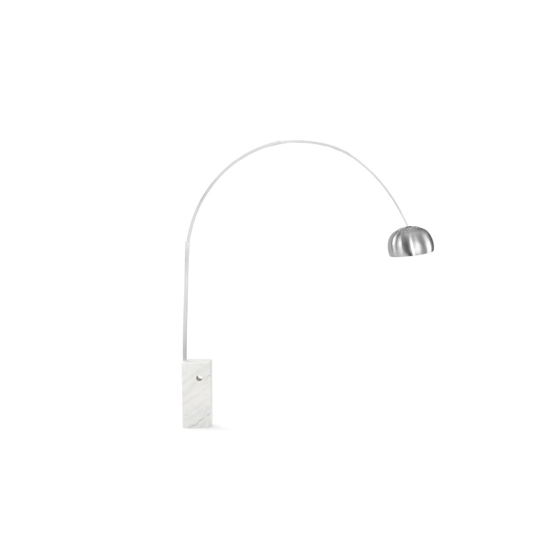 With its oddly exaggerated shape, the Achille Floor Lamp is a timeless tribute to 1960s design. Inspired by Italian street lighting of the time, the lamp is far more stylish (and just as functional) than a common street lamp could ever be. This tall lamp stands at over two meters, yet needs no ceiling suspension. The soft curve of its long, stainless steel stalk allows a bright, bulbous head to hang down and focus the light. Giving the Achille Floor Lamp its stability is a solid, heavy marble base. The design allows the lamp to stand in the background and support the scene, without dominating or unnecessarily taking up space.