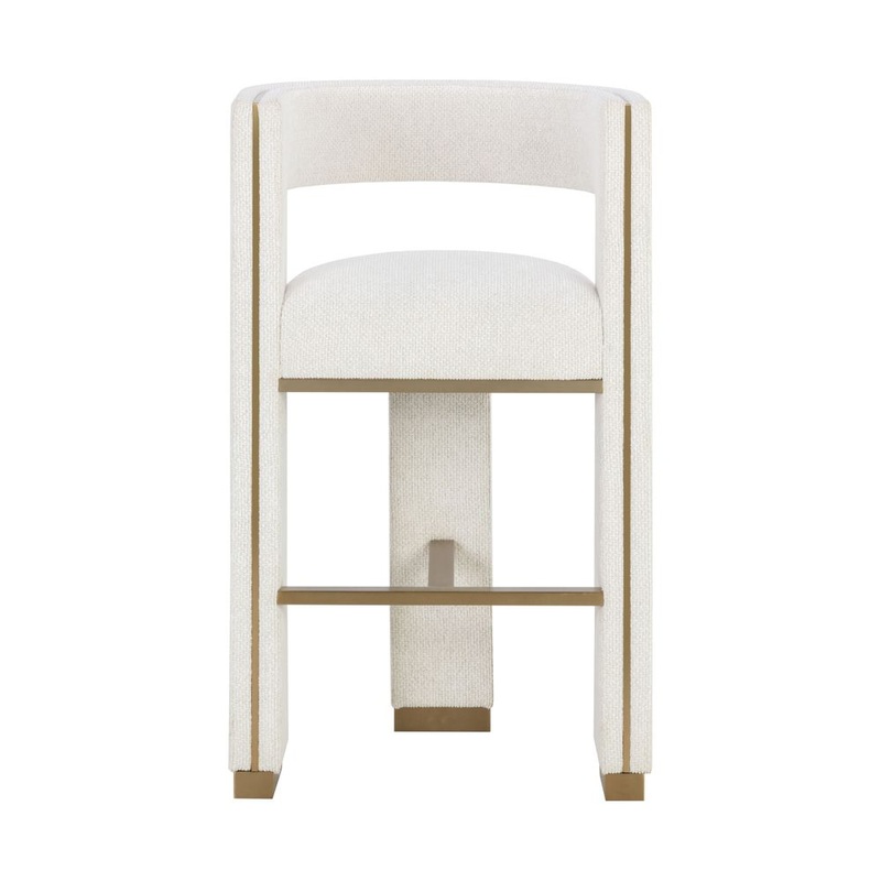 Description: Perfectly poised with a distinct three-legged design, the Adamina Barstool will leave a lasting impression. Powder-coated gold metal detailing enhances the plush texture of our rhea light barley performance fabric for a stylish seating solution. Performance fabric is moisture repellent, durable and easy to clean.