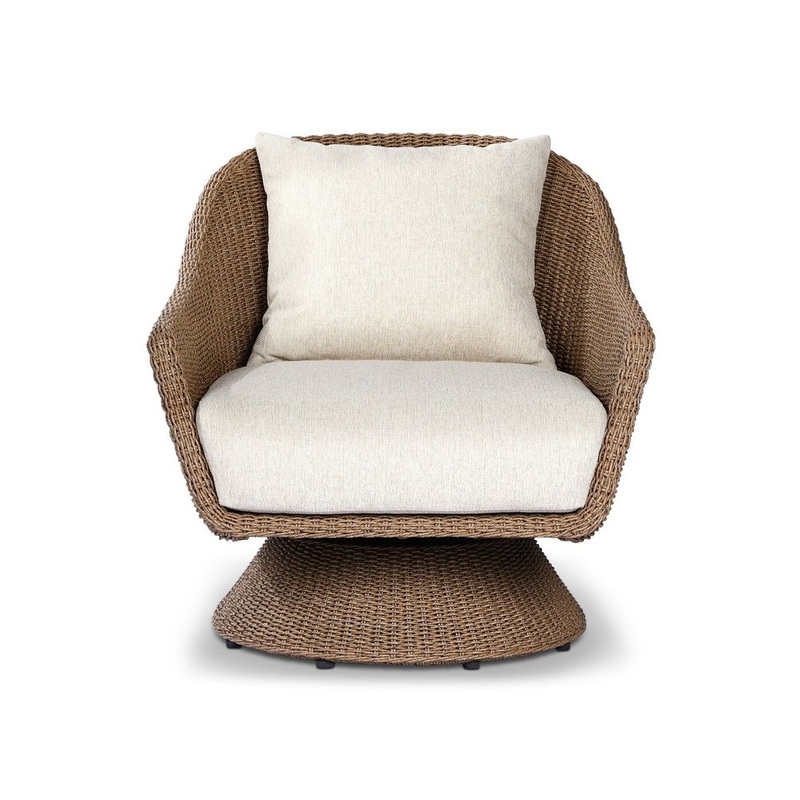 Description: Inspired by traditional shapes and characterized by a low-profile seat, wood framing and woven cord styling come together to support a cream-colored cushion set. Sustainably made with zero waste, luxurious Italian upholstery places a new and unique spin on indoor/outdoor seating, offering soft, durable fabric that’s highly resistant to sun, stains, mold and abrasion. Cover or store indoors during inclement weather and when not in use.