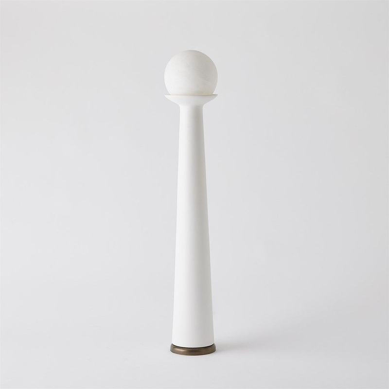 Description: Transform your space with the Alabaster Bulb Tower Lamp. This elegant piece combines Portuguese slip-molded ceramic with an Italian alabaster bulb, casting a warm glow that showcases the stone’s beautiful details. As alabaster is a natural product, please be aware that there will always be variations in veining and color. We celebrate these differences, as they give each piece its unique character, making them one-of-a-kind creations.