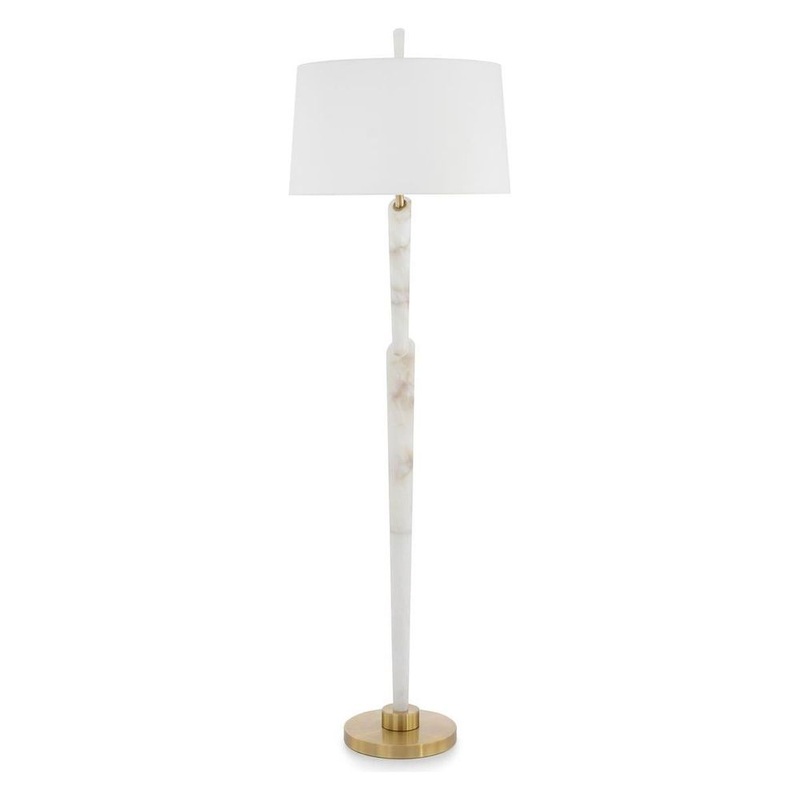 This floor lamp features telescopic alabaster atop an iron base in a Bronzed finish.