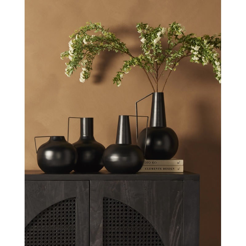 The ideal accents on mantels or tabletops, set of four decorative vases of matte black iron, in varied sizes for endless grouping options.