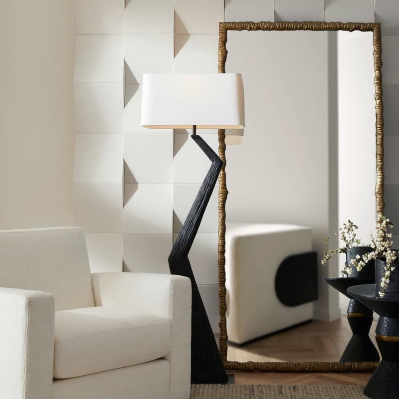 Our supersized floor mirror of antique brass-plated aluminum has a freeform texture reminiscent of twisting vines. Botanical in influence, it can be displayed both vertically and horizontally. Cleat attachment for secure hanging. Finish will vary.