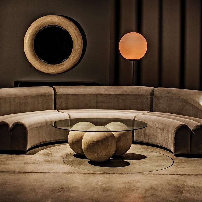 This bold and sculptural coffee table features a triad of large teak spheres that are topped with a grand 48″ tempered glass top. The bold design is sturdy yet airy, so it elevates the aesthetic of any space.