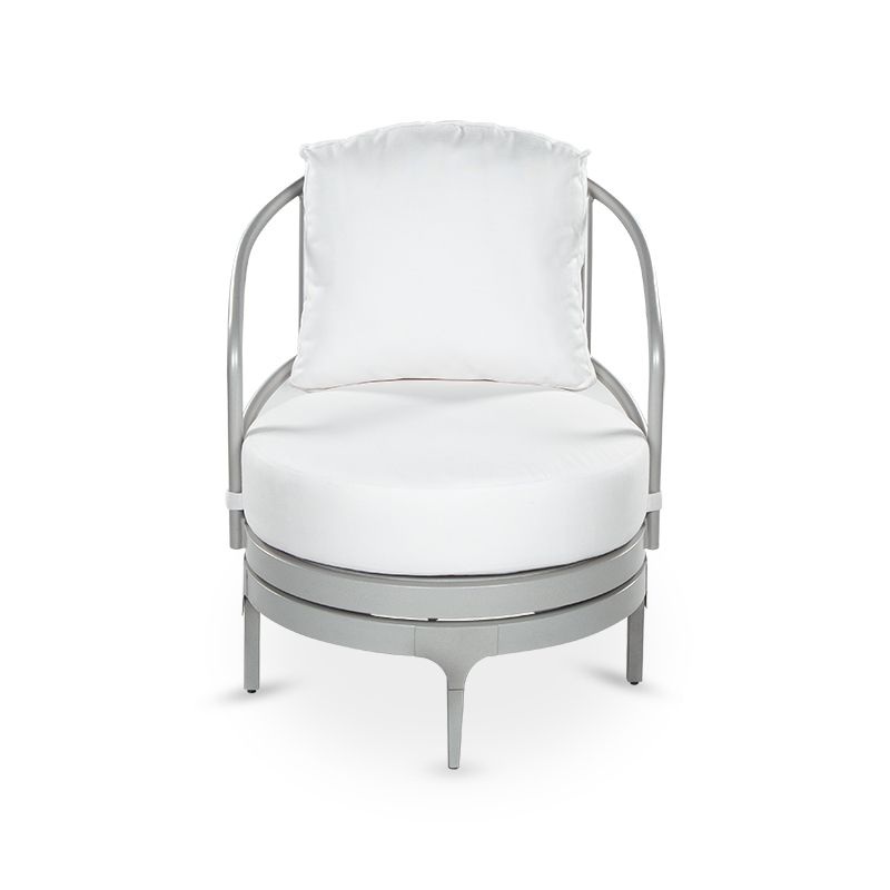 Description: Designed with an art deco style reminiscent of the Roaring Twenties this swivel chair fuses symmetry with subtle curvature and a dramatic thick cushion for style and comfort.