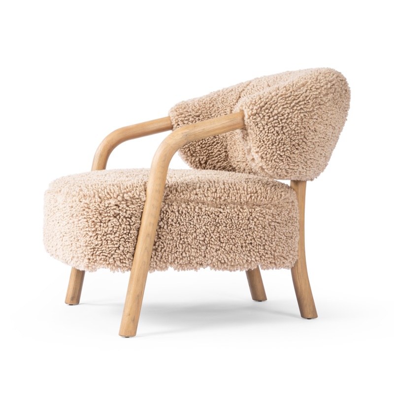 Experience elegant sophistication with theAmarante Chair. Sumptuous faux Mongolian shearling blends effortlessly with the solid oak frame, creating cozy textural delight. Comfortably showcasing classic 1970s style, the BRODIE CHAIR brings a luxurious upgrade to your living space.
