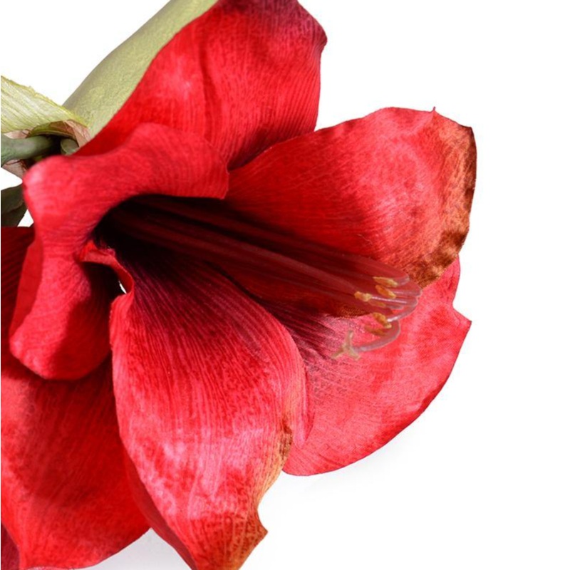 Elevate your home decor with our Amaryllis Stem. Featuring two large, lifelike blossoms with a dark throat, two buds, and a thick green stem, this faux flower adds natural beauty and texture to any room. Enjoy its year-round beauty without any maintenance. Indoor use only.