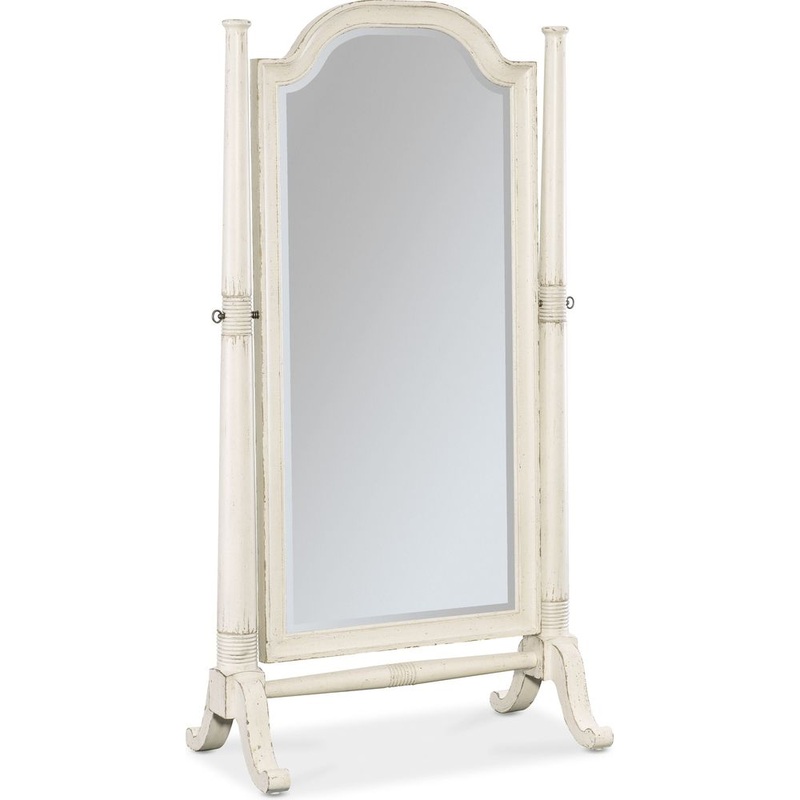 Description: Celebrating the winsome beauty of a simpler time, the Americana Tilting Floor Mirror has beveled glass and carved accents on the posts and stretcher. The Daisy finish over Cathedral Oak Veneers suggests the natural wear one might expect of pieces passed down through the family over time, revealing the rich oak character beneath.