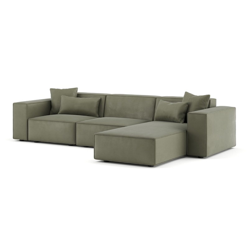 Arles – Arles Sectional, Three Seater, Right Chaise, Sage Vegan Suede