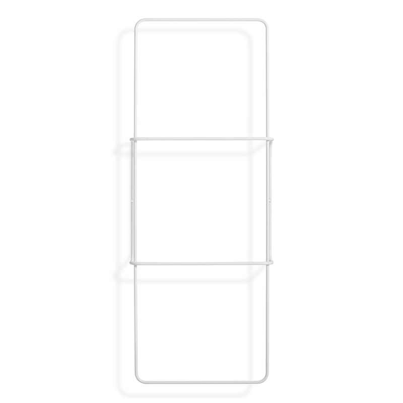 Give your walls a graphic treatment. Powder-coated steel meanders to form a clutter-free storage solution. Poised to look good holding your towels, bespoke quilts or nothing at all.