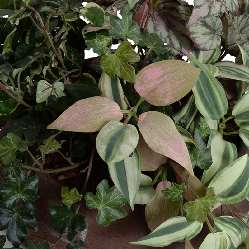Bring the beauty of nature into your home with this versatile clay bowl filled with a selection of lush greenery. No need for sunlight, as each plant boasts lifelike leaves in a variety of rich hues and textures. Perfect for adding biophilic vibes to any indoor space.
