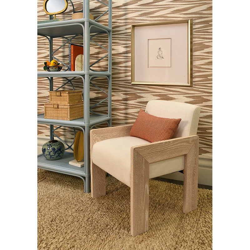 Description: SQUARE ARM WOODEN ACCENT CHAIR IN CERUSED OAK WITH PERFORMANCE WHITE LINEN UPHOLSTERY33.25″ H x 24.25″ W x 25.25″ DSeat Height: 21.5″*Cerused oak has natural variations and may differ slightly between panels.