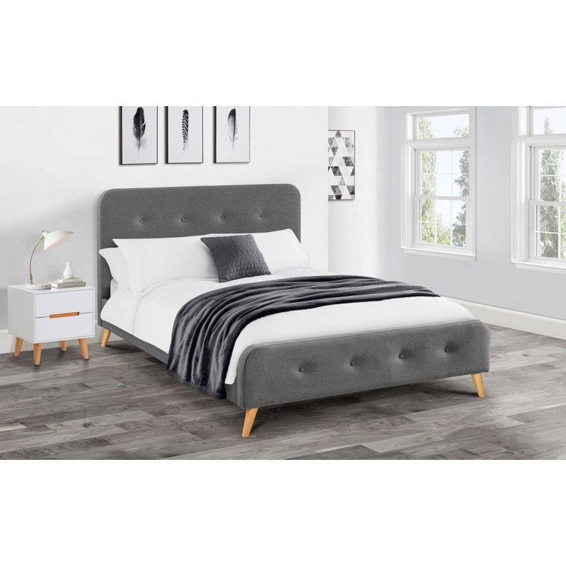 The Astrid fabric bed combines classic Scandinavian design with contemporary light oak splayed legs for a timeless style. Beautifully upholstered in a crisp grey linen with a neatly buttoned headboard, Astrid’s clean lines sit well with any contemporary decor and it is the perfect accompaniment to Julian Bowen’s stylish Alicia range of bedroom furniture range. The robust construction incorporates a sprung-slatted base to ensure a comfortable night’s sleep and prolonged mattress life.