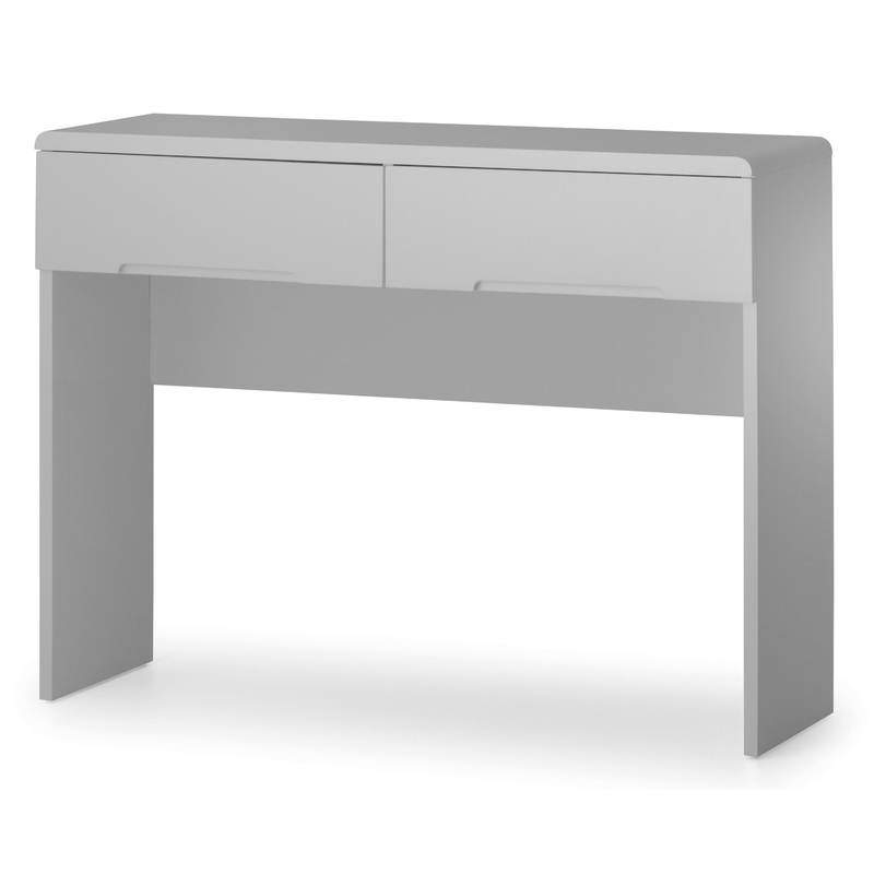 Two drawers offer discreet storage, while the spacious lower shelf is perfect for styling with baskets, books or your favourite home fragrance. Gold hardware and gently rounded edges add a polished finish.