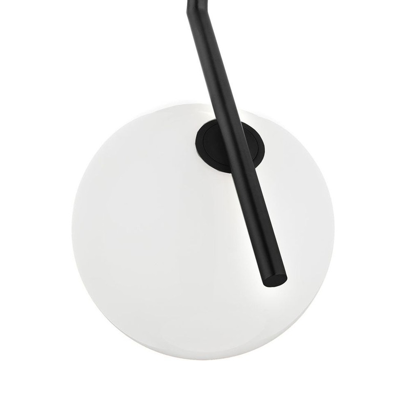 Featuring a simple yet intriguing design, this stunning ceiling lamp will shine in any room. Demonstrating delicate balance this piece is composed of a slender metal rod and frosted glass orb. The glass shade seems impossibly attached to the arm as it hangs down and softly diffuses the light from the 3.5 watt G9 bulb within. Like your own personal full moon this lamp will fill your space with an ambient glow.