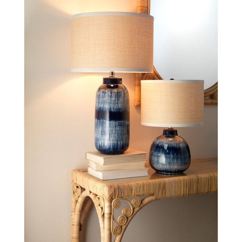 Our Batik lamps are available in two sizes and are great accents for today’s updated blue and white coastal esthetic. Inspired by Japanese ceramics, these lamps are hand glazed in Indigo blue and white, making each finish different and unique.