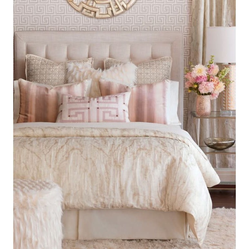 • Greek key design and nailhead accents on fabric face