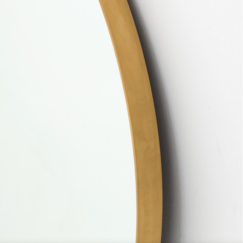 Grace on the edge of modernity. Round stainless steel takes on a polished brass tone to let clean, mirrored glass speak for itself.