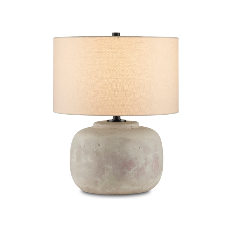Introducing the Berti Table Lamp, featuring a distressed antique earth finish on its concrete body. Our talented finish artisans create a beautifully aged look. Topped with a light beige linen shade, this buxom distressed gray lamp adds a touch of elegance to any room.