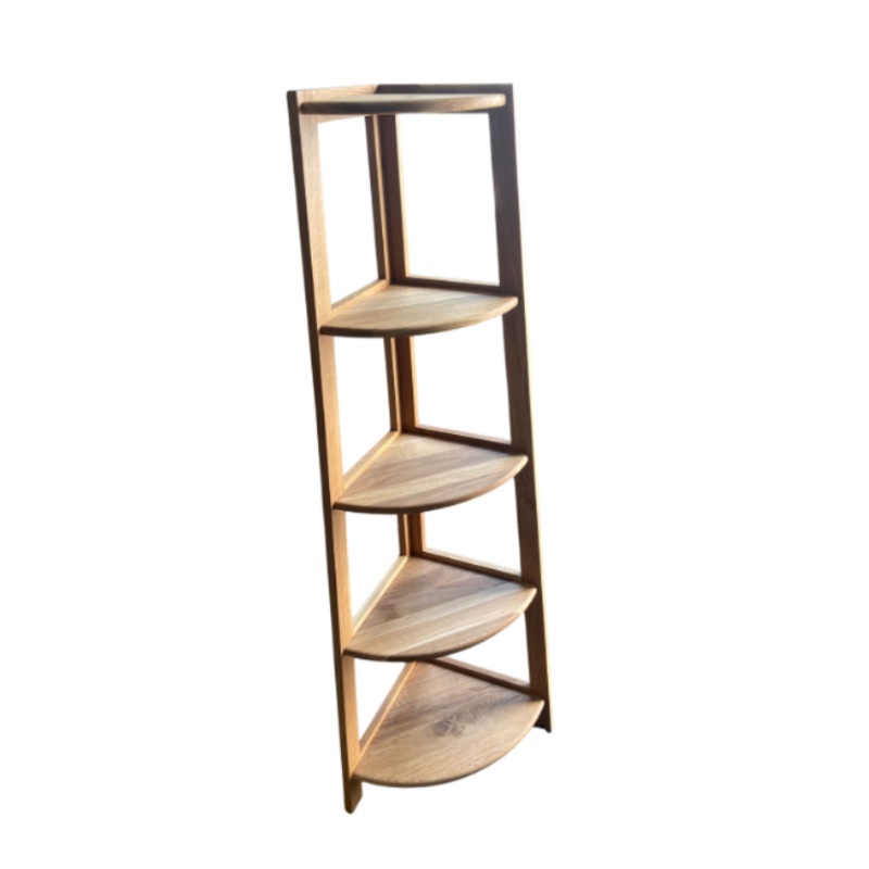 This bespoke corner shelf features elegantly curved oak shelves, handcrafted by Jersey Oak. Designed to fit snugly into any corner, it maximises space while adding a warm, natural touch to your home. Perfect for displaying books, plants, or decorative items, this sturdy and stylish shelf combines functionality with timeless craftsmanship.