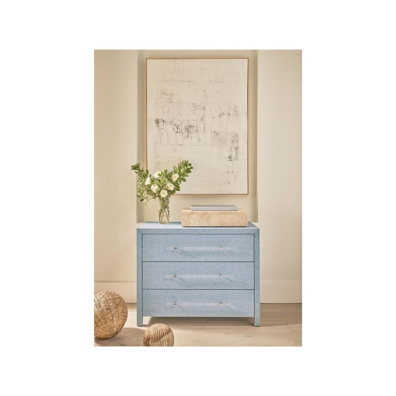 The textured Bimini Chest is a true gem with a blue, wallpaper-wrapped body offset by long acrylic pulls. Bring an instant pop of color and storage into any interior with this serene selection.