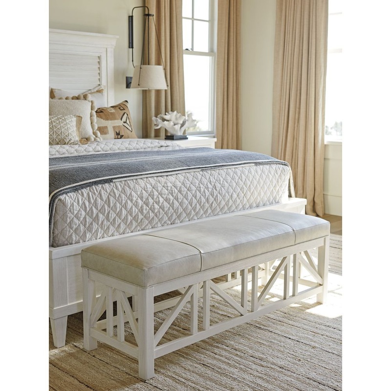 Marketing Copy: Ocean Breeze offers a fresh take on relaxed coastal living with transitional designs crafted from quartered mahogany in a beautiful shell white finish. Natural materials add textural interest and a feel of authenticity to the collection, including leather-wrapped rattan, woven raffia, braided lampakanai and Santa Cruz marble. Custom hardware and metal bases are finished in aged pewter, reinforcing the casual spirit of the designs. Unique upholstery silhouettes incorporate woven materials and intricately carved wooden frames for a sophisticated look that retains the casual essence of the coast. Soothing color palettes include seaglass, citrine, coral, marine blue and crisp white. The Tommy Bahama brand is iconic for its interpretation of casual elegance, and Ocean Breeze offers an inspired interpretation of refined coastal living.