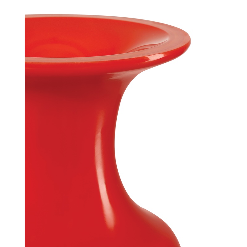 Description: The Bittersweet Peking Vase is made of unique layered glass, a complex process of blowing, carving then dipping multiple times. . The wonderful deep coral orange was a special color during the Ming Dynasty, as it historically represented fire and desire, and was highly prized in the emperor’s palace for its brilliance.